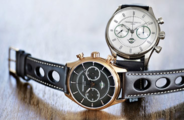 Frederique Constant has long been associated with numerous vintage car rallys all over the globe, often as the official timekeeper. It has been closely associated with events from China to France with the Peking to Paris Rally and also to America, Canada and Mexico with the Carrera Panamericana. The Vintage Rally collection shares a number of features with the cars to which they pay homage - Limited Edition to 1,888 pieces, leather straps inspired by vintage driving gloves, and special gift box packaging featuring the famous NOJ393. Pure style for pure passion.