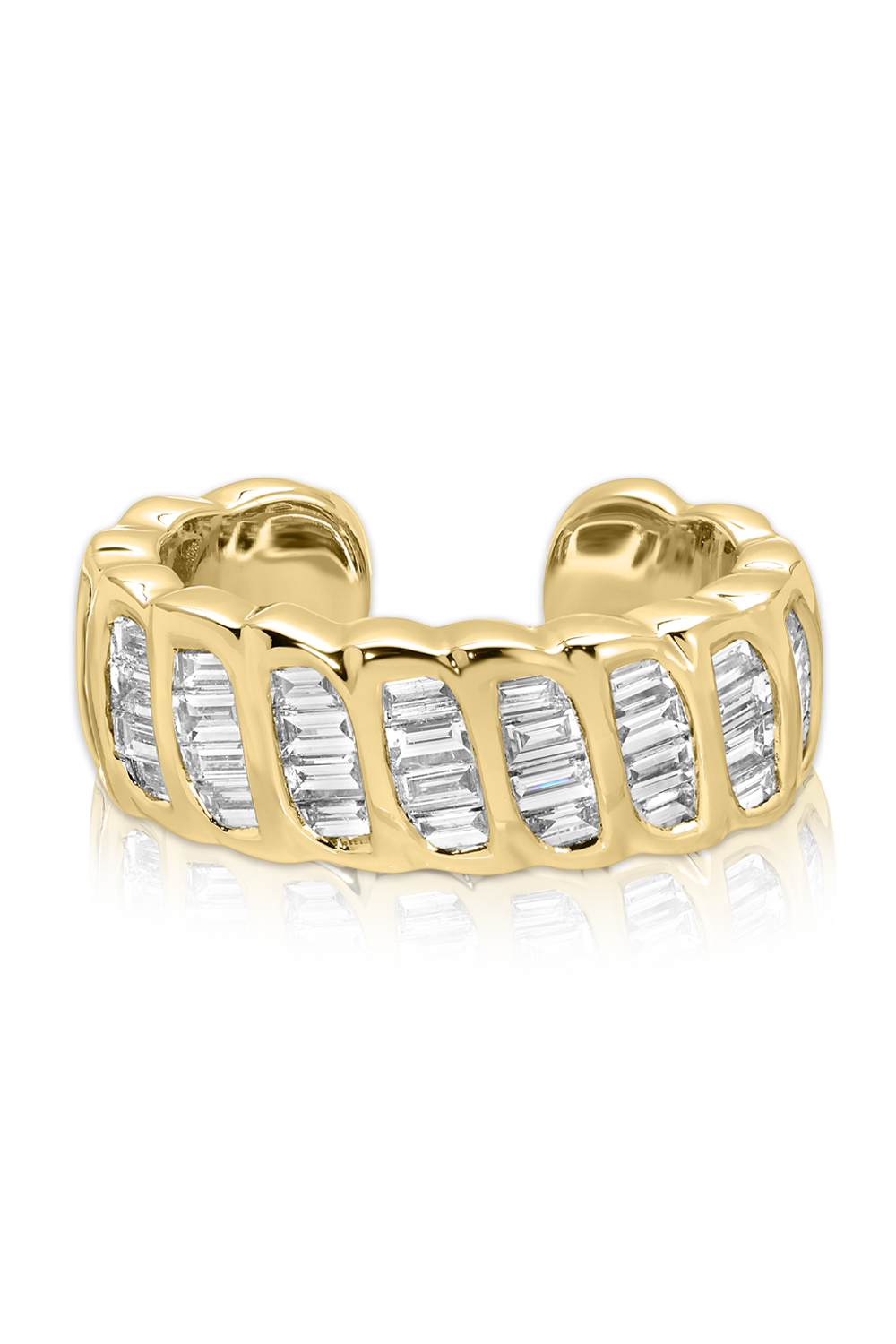 Zoe single ear cuff in 18k yellow gold, Baguette cut diamonds total 0.5 ct. FG VS...