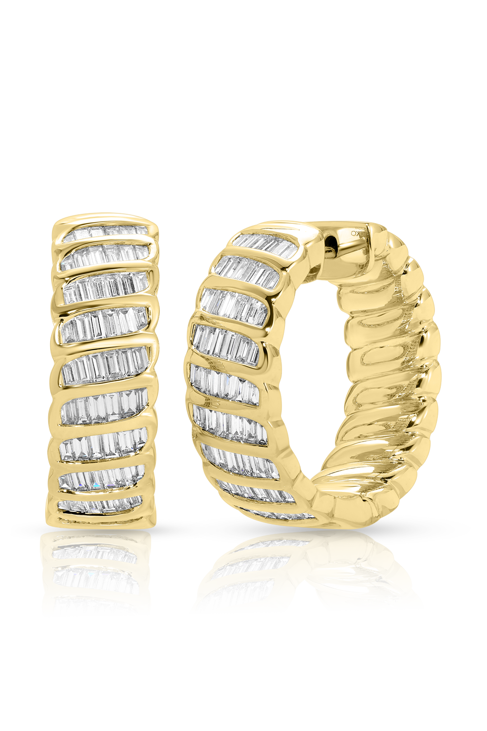 Zoe Hoops in 18k yellow gold, Baguette diamonds total 2.13 ct. FG VS...