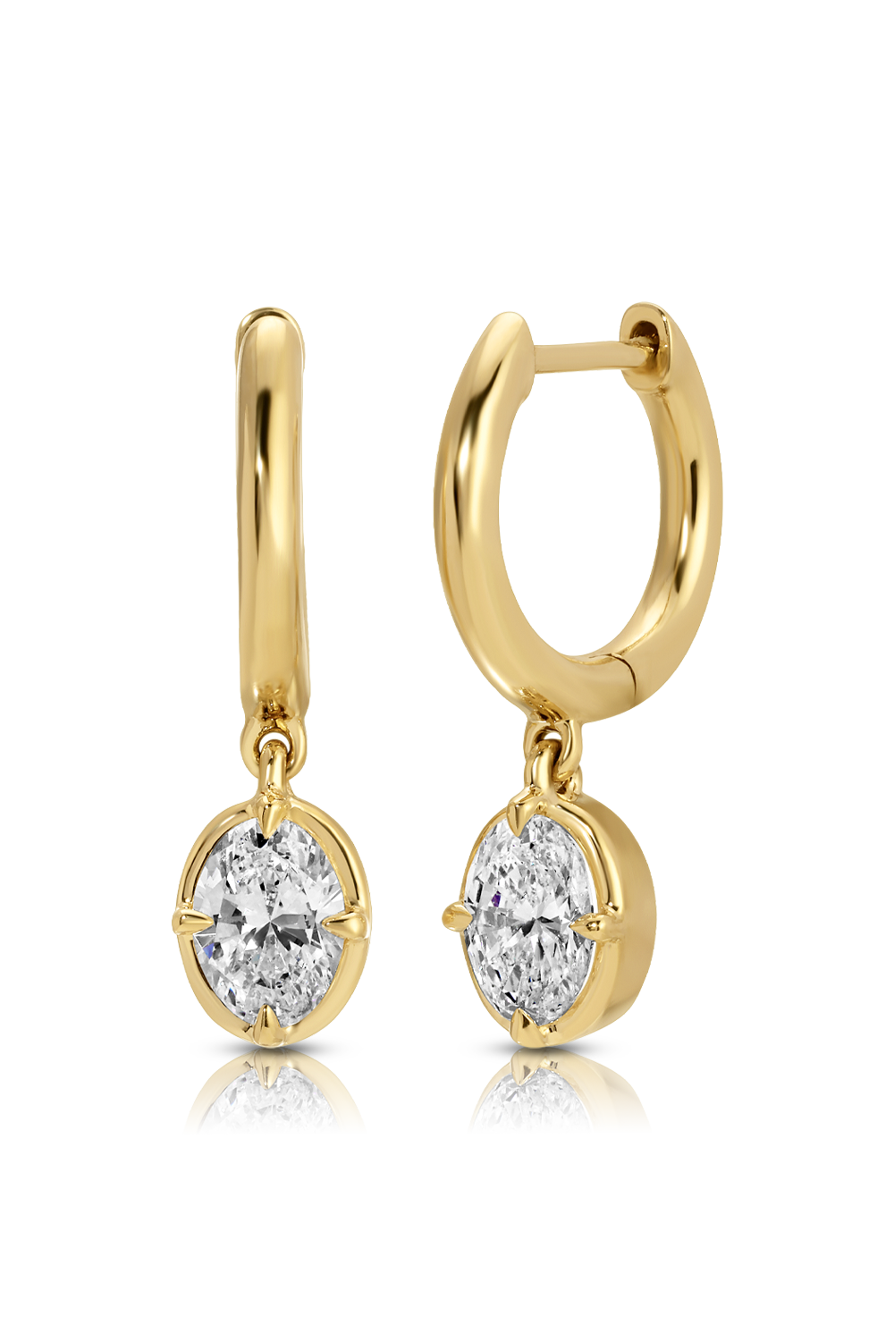 Classic Oval Diamond Bella Huggies in 18k yellow gold, Oval cut diamonds total 0.74 ct. FG VS...