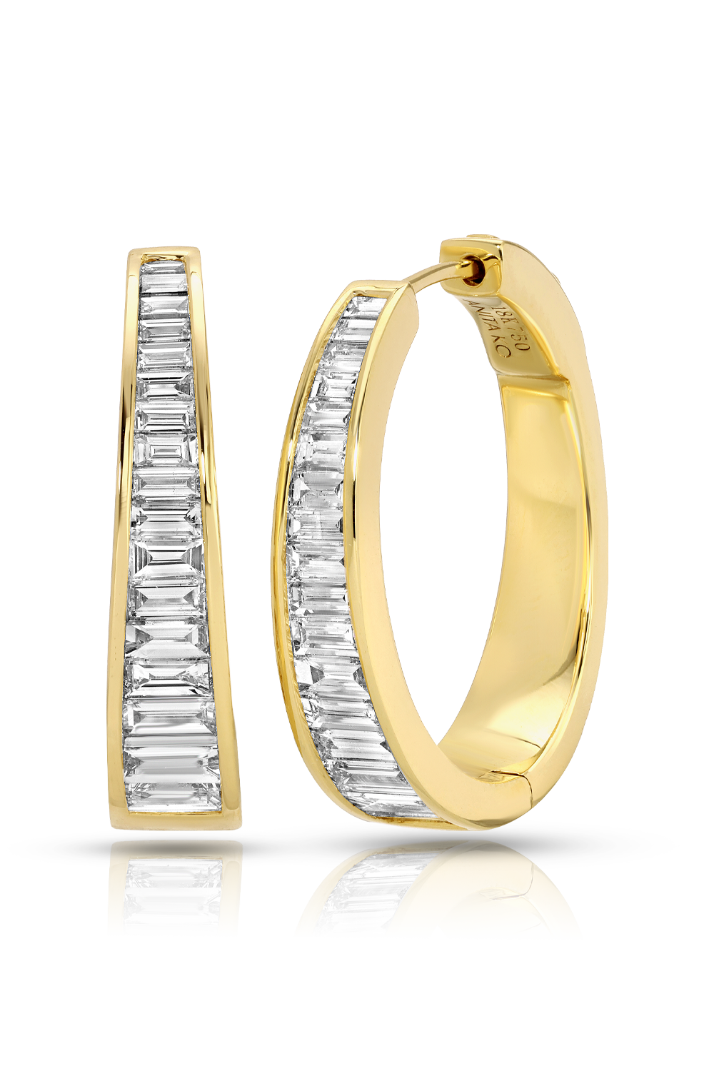 Classics Baguette Diamond Meryl Hoops in 18k yellow gold, Baguette cut diamonds total 0.93 ct. FG VS...
