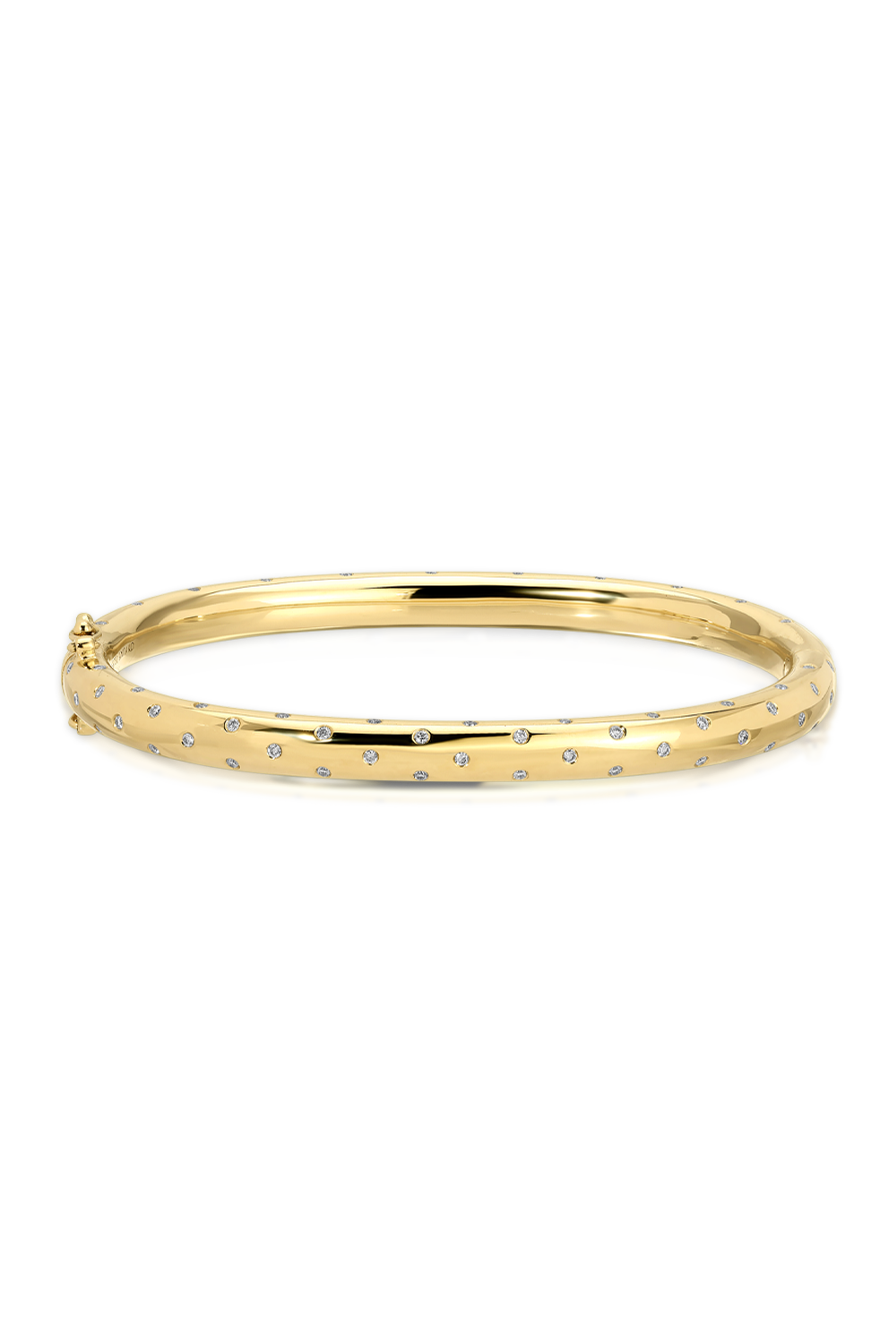 Cosmo Orion Diamond Oval Bangle in 18k yellow gold , length 6.5 in, Pave diamonds total 0.77 ct. FG VS...