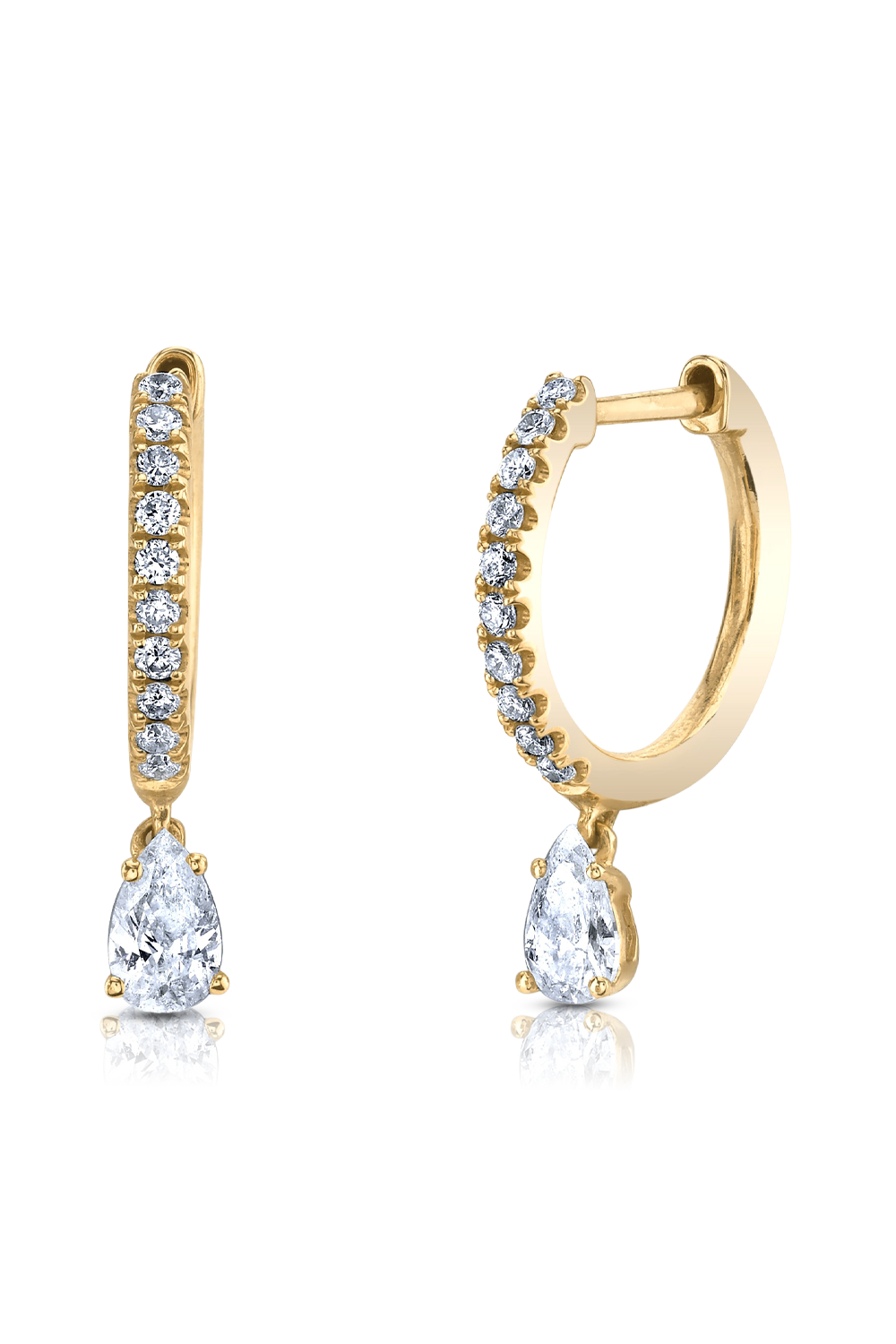Classic Pear Drop Diamond Huggies in 18k yellow gold, Pear cut diamonds total 0.4 ct. FG VS, Pave diamonds total 0.16... ct. FG VS