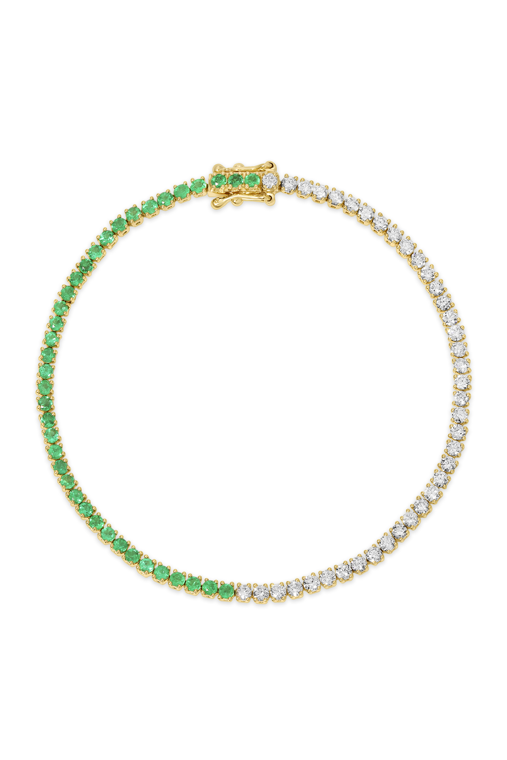 Emerald and Diamond Hepburn bracelet in 18k yellow gold, length 6.5 in, Round cut diamonds total 1.1 ct. FG VS, Round... cut Colombian emeralds total 1 ct.