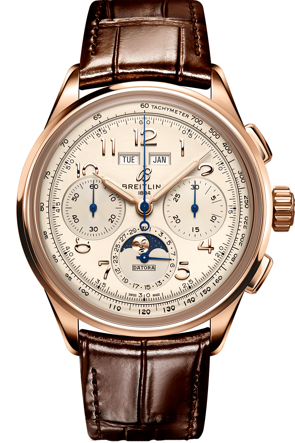 Paying homage to three generations of inventors – Léon, Gaston & Willy Breitling – the Premier Datora is the most refined Breitling chronograph with its complete calendar and moon-phase. As Willy Breitling said, the Premier is an “unmistakable stamp of impeccable taste”.