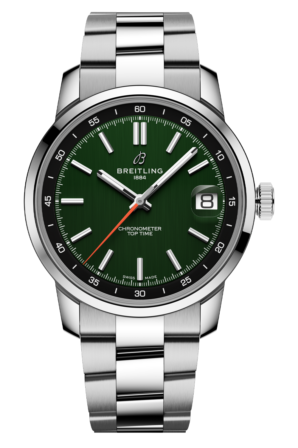 The Top Time B31 blends retro aesthetics with a modern edge. Its dial design takes inspiration from classic-car... dashboard clocks, while its 38 mm case strikes a balance between vintage proportions and contemporary design, perfect for any wrist thanks to its universal size. Three colorways—green, blue, or a two-tone combination of white and sky-blue—pair with either a three-row stainless-steel bracelet or a perforated calfskin strap that gives a nod to vintage racing gloves. Whether cruising the open road or simply embracing the everyday, this watch is a celebration of individuality and adventure.