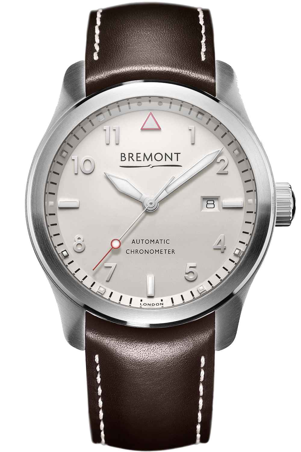 Hardened stainless steel Bremont Trip-Tick construction with scratch resistant DLC treated case barrel....