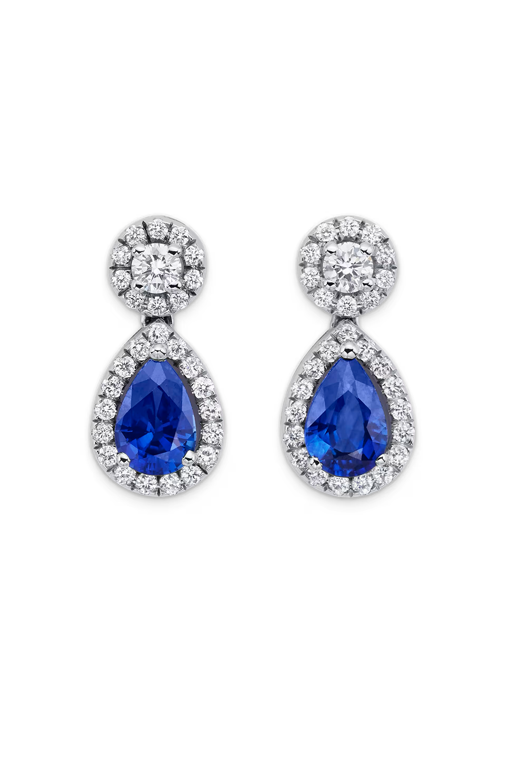 Ear pins B-Classics Embrace surround Promis-System 18K white gold, 2 sapphires (EH) with pear cut total 0.79 ct.,... diamond with brilliant cut total 0.35 ct. F - si