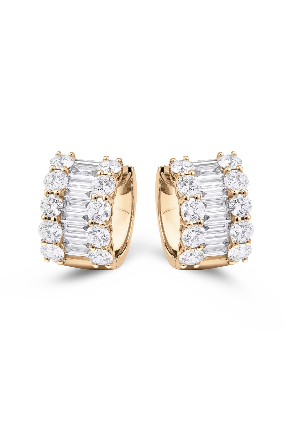 These Baguette Love huggie earrings amplify the dazzling depth of 20 baguette-cut diamonds with the warmth of 20... brilliant-cut diamonds. Exquisite 18-carat rose gold softens the crisp shine to reveal a distinct dimensionality in these classic earrings.
