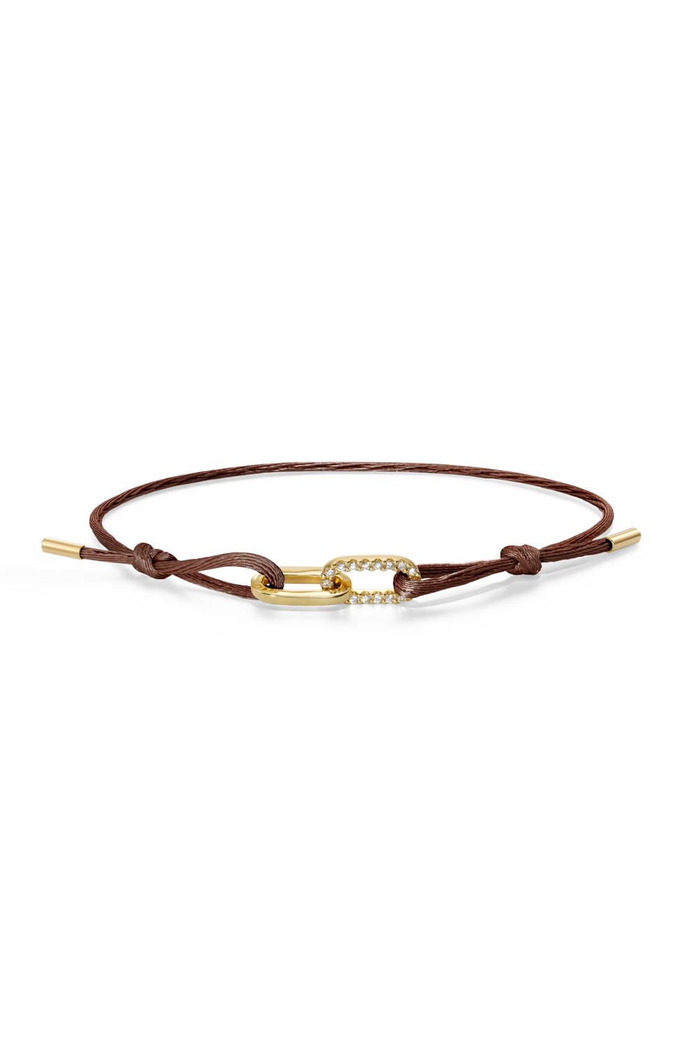Bracelet Link Brown cord 18K yellow gold, 18 diamonds with brilliant cut total 0.16 ct. G - si1...