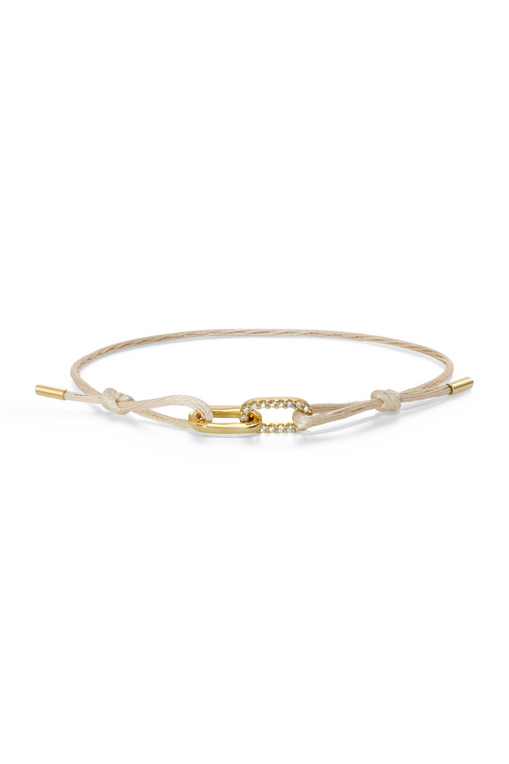 Bracelet Link Beige cord 18K yellow gold, 18 diamonds with brilliant cut total 0.16 ct. G - si1...