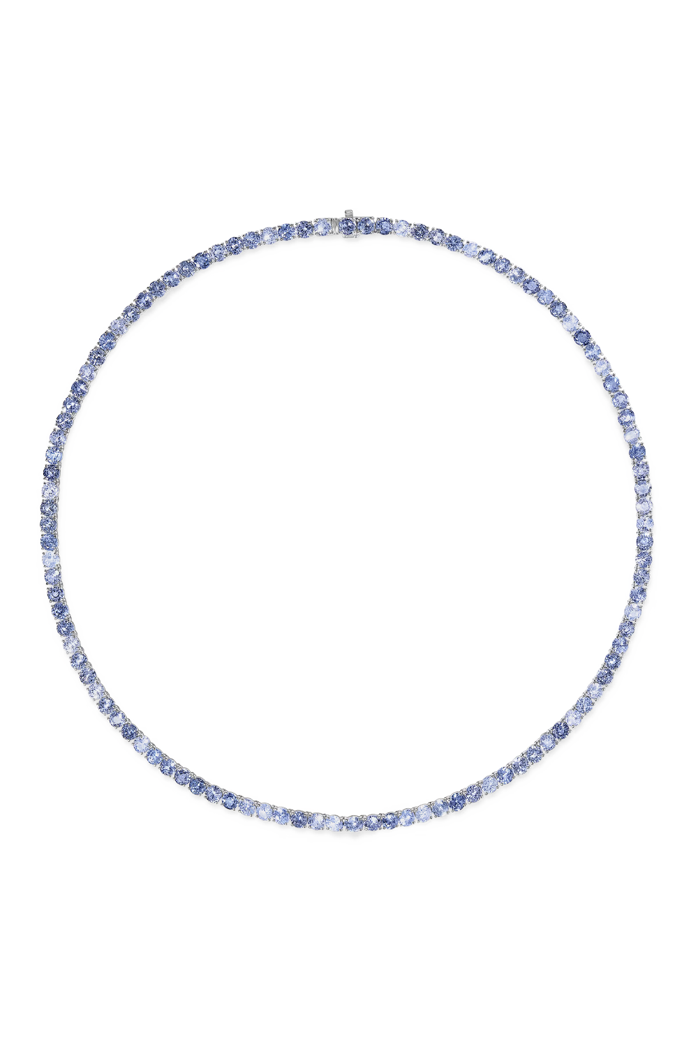 This Pastello Ocean Breeze Necklace captures the tranquility of a sea breeze. Round-cut sapphires in the purest... blues create a gradient reminiscent of sunlight on the ocean. This Pastello Ocean Breeze Riviere Necklace, set in a fine strand of contrasting 18K white gold, displays the effortlessness of natural beauty.