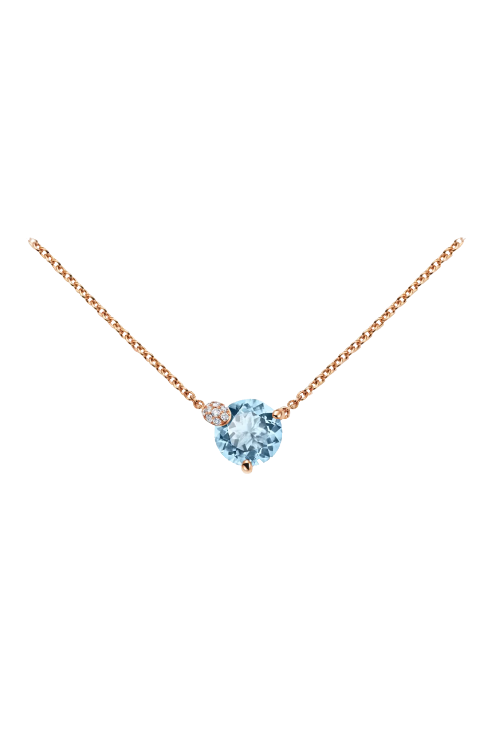 This Peekaboo Neck Pendant showcases the refreshing color of its aquamarine center stone with additional shine from... 10 diamonds in a pavé setting on the enlarged prong. The Peekaboo round cut optimizes the stone’s proportions, and pairs beautifully with the rose gold chain, creating a vibrant sparkle that’s exuberant, radiant and optimistic all at once.
