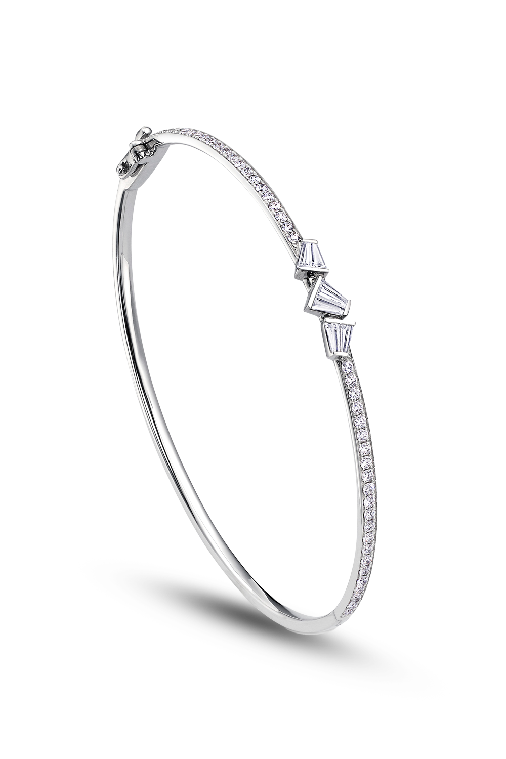Bangle Rock Diamonds 18K white gold, 6 diamonds with trapeze cut total 0.4 ct. G - vs, 44 diamonds with brilliant cut... total 0.6 ct. G - vs