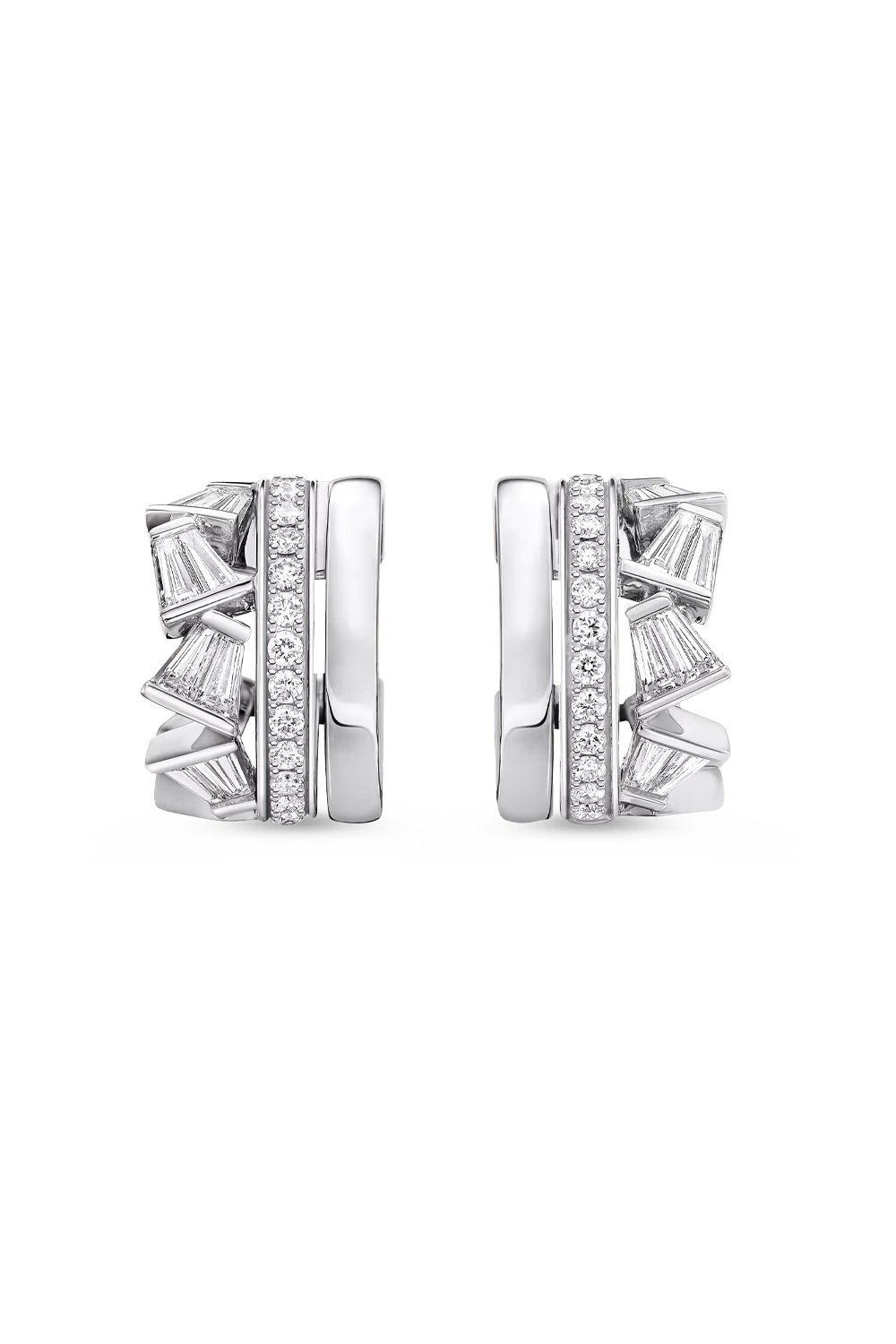Ear pins Rock Diamonds creole 18K white gold, 16 diamonds with trapeze cut total 0.45 ct. G - vs, 28 diamonds with... brilliant cut total 0.2 ct. G - vs