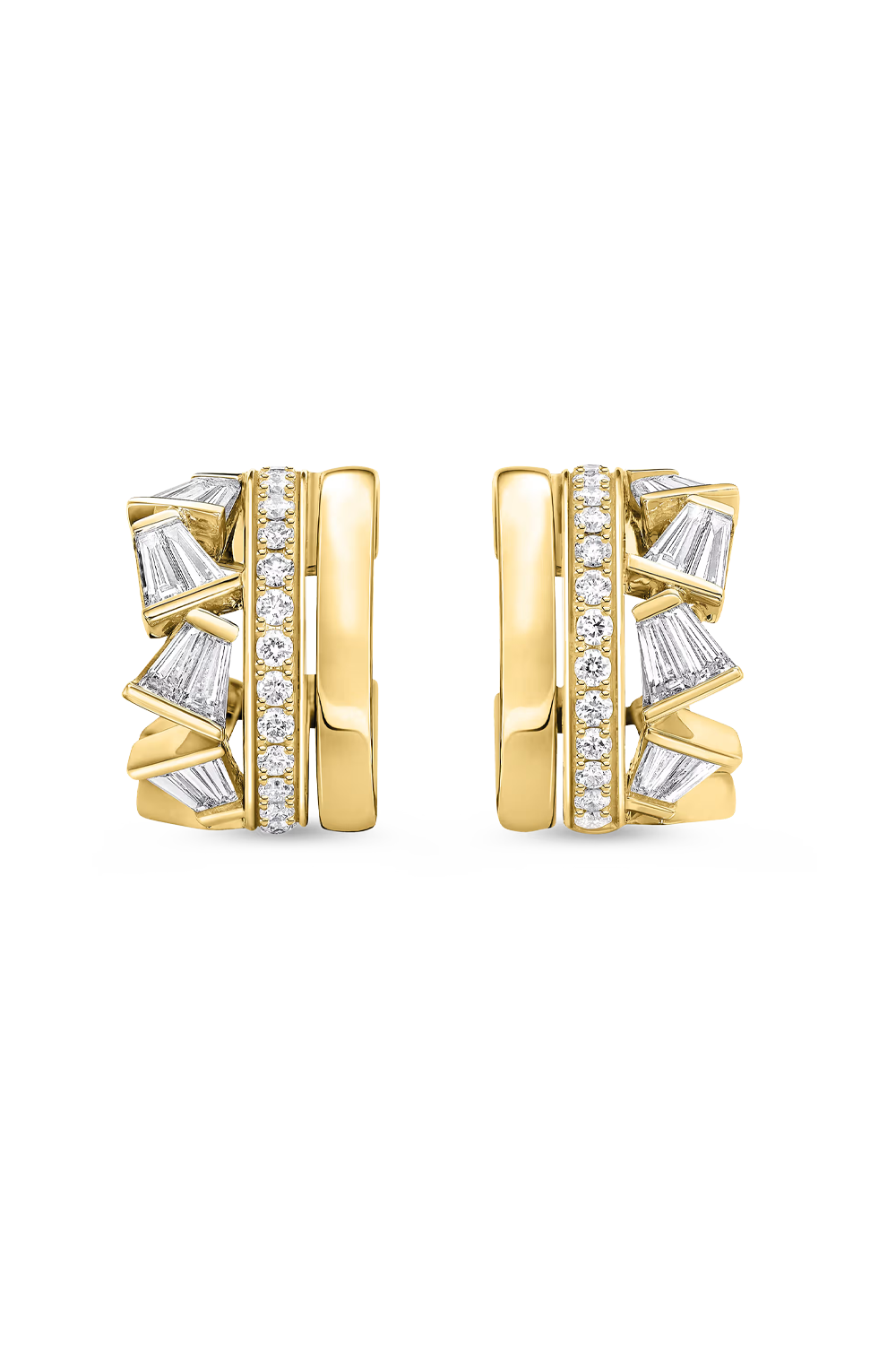 Ear pins Rock Diamonds creole 18K yellow gold, 16 diamonds with trapeze cut total 0.45 ct. G - vs, 28 diamonds with... brilliant cut total 0.2 ct. G - vs