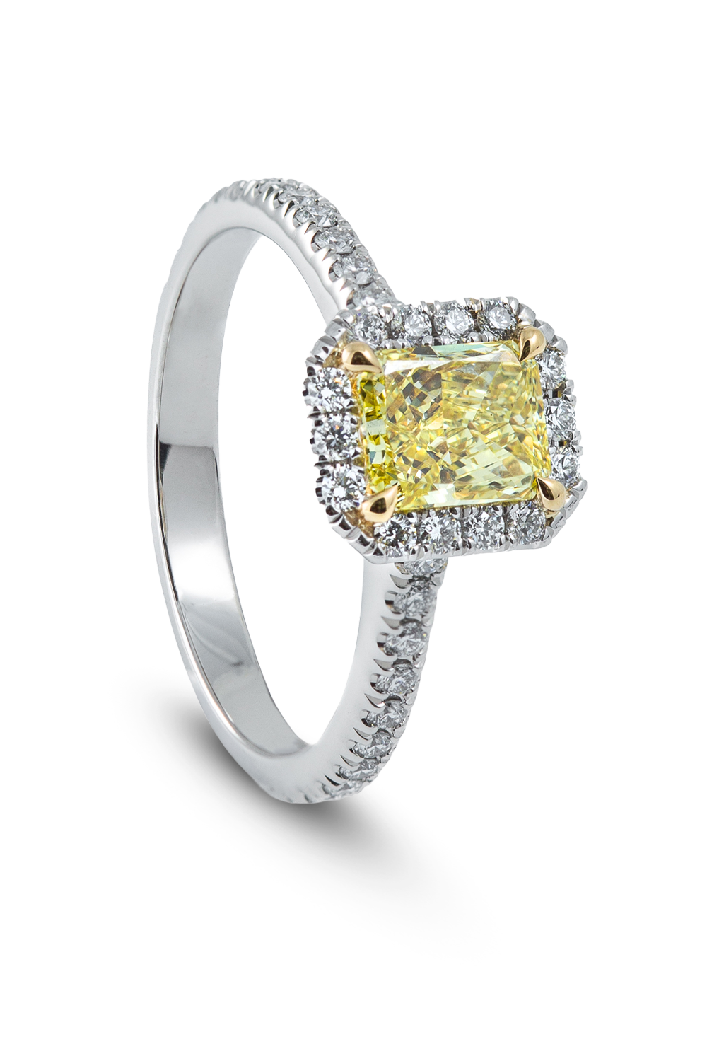 Solitaire Joy platinum and 18K yellow gold, size 53, diamond with radiant cut 0.81 ct. FIY - VS2, certificate GIA, 40... diamonds with round brilliant cut 0.33ctw F/G - vvs/vs