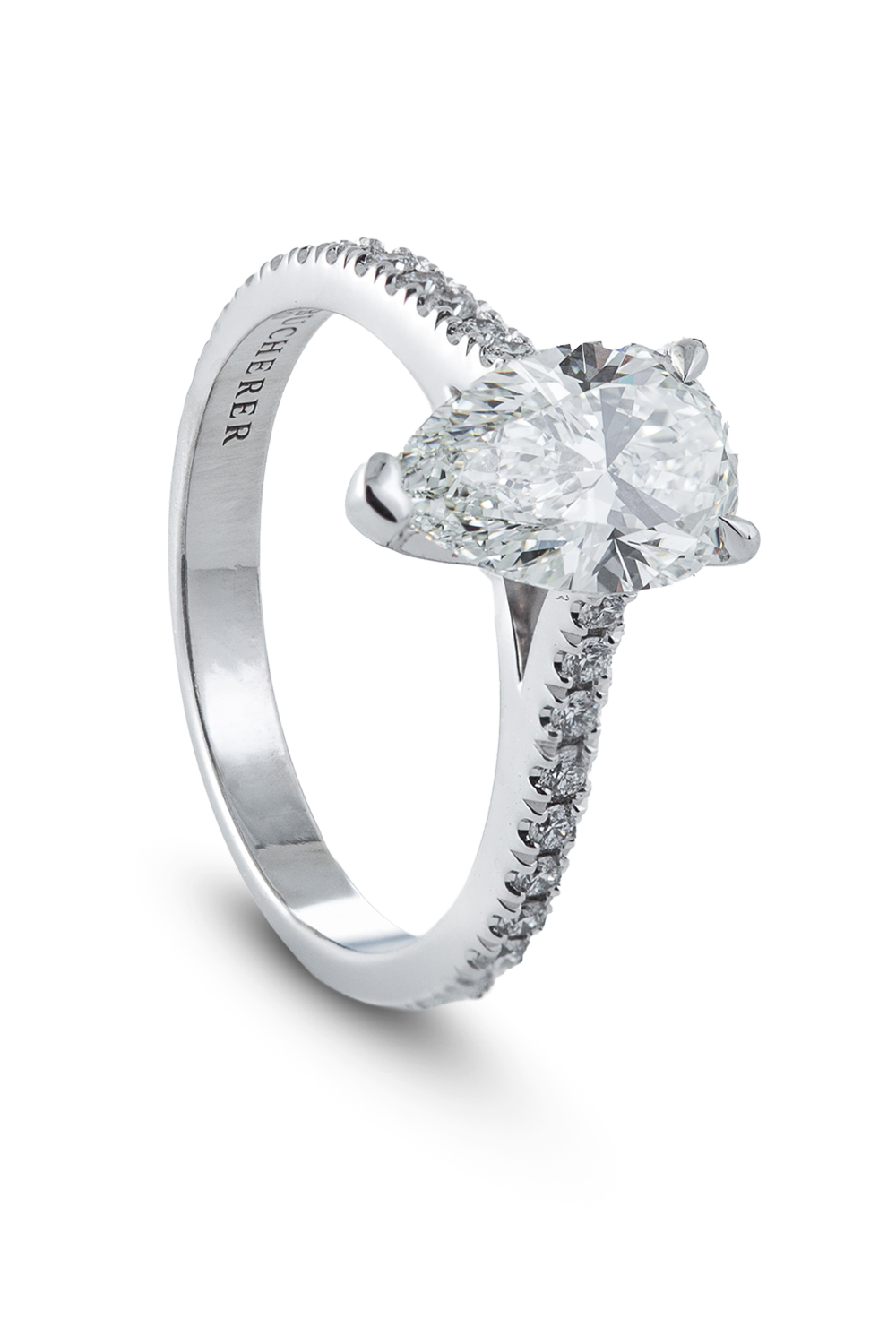 Solitaire Joy 18K white gold, size 53, diamond with pear shape 1.51 ct. H - VS1, certificate GIA, 26 diamonds with ... brilliant cut total 0.25 ct. F/G - VVS/VS
