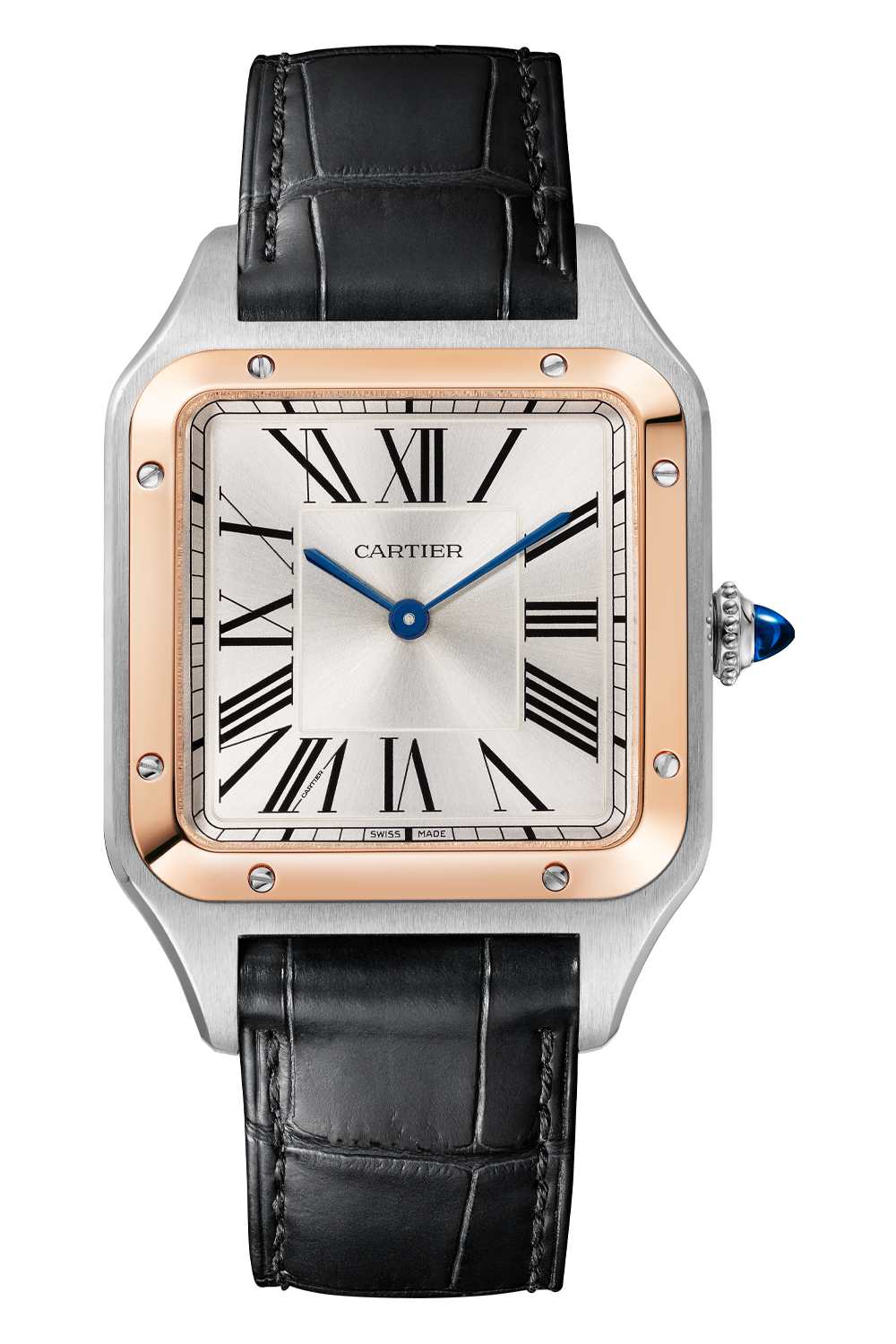 A modern marvel as one of the first ever wristwatches at the time of its invention in 1904, the Santos de Cartier has evolved into a true icon. It was created by Louis Cartier for the famous Brazilian aviator Alberto Santos Dumont, who wished to tell time while flying. The recognizable design, defined by rounded angles in the dial, a seamless curve of the horns and exposed screws, has inspired countless reinterpretations over the past century.