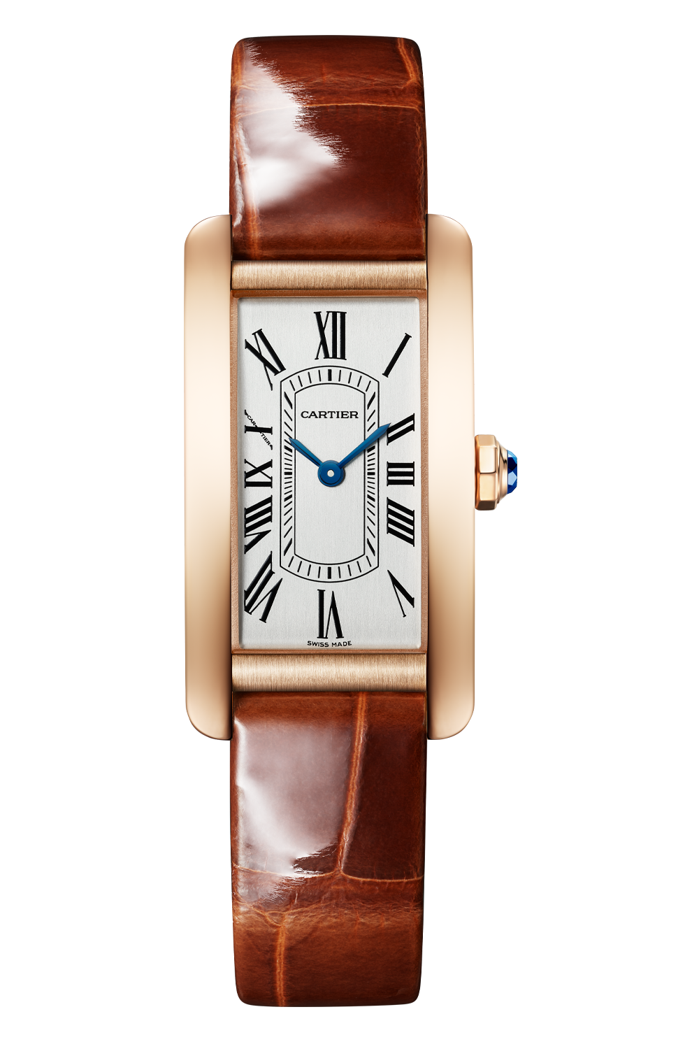 An elongated case with a pronounced curve defines the Cartier Tank Americaine. Its geometry is more playful than the original model, while retaining the rectangular form that defines the Tank series. The Tank Americaine is a powerfully elegant watch designed with connoisseurs in mind.
