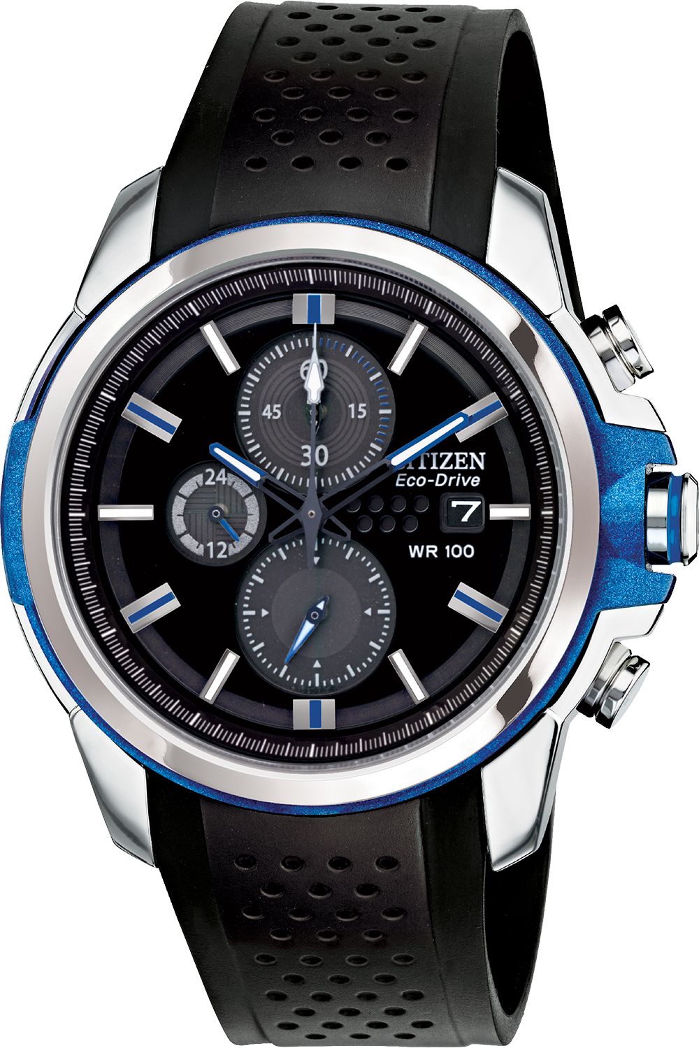 Take action and show your inner drive with the rich and sporty styling of the AR 2.0 collection. Proprietary chroma... finishing enhances the 44.5mm stainless steel cases with color accents.The distinctive 'D' crown and the pierced leather strap design complete this edgy look. From the Citizen Design Studios, Drive from Citizen Eco-Drive is fueled by light, any light, so it never needs a battery.