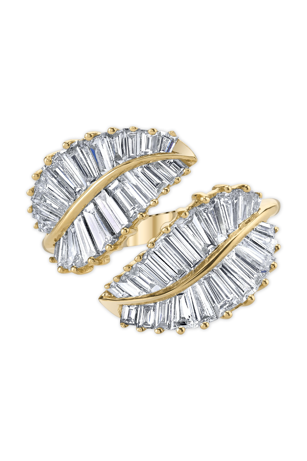 Classic Palm Leaf Ring in 18k yellow gold, size US 7, Baguette cut diamonds total 2.61 ct. FG VS...