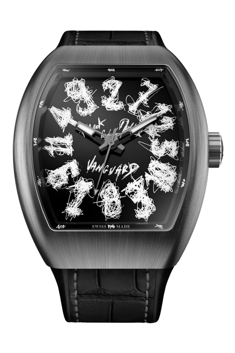 The Vanguard Crazy Hours Hom Nguyen is a stunning fusion of haute horology and contemporary artistry. This... collaboration showcases the Vietnamese-French artist's expressive and unconventional approach to portraiture in a miniature work of horological art. Housed in the signature Vanguard case, the watch exudes modern elegance with its bold curves and ergonomic design. The non-sequential Crazy Hours complication features numerals seemingly arranged in a random order, yet the hour hand jumps to the correct numeral in the blink of an eye at the top of every hour. This playful take on time challenges traditional perceptions while offering seamless functionality and is a perfect match to the energetic artwork of Nguyen. Powered by a meticulously crafted automatic movement, this timepiece delivers precision and reliability as well as an avant garde style. A true collector’s piece, this limited-edition watch is a bold statement of creativity and innovation, appealing to watch enthusiasts and art lovers alike. Whether admired for its technical ingenuity or its artistic brilliance, the Vanguard Crazy Hours Hom Nguyen is a timepiece that redefines the boundaries of traditional watchmaking.