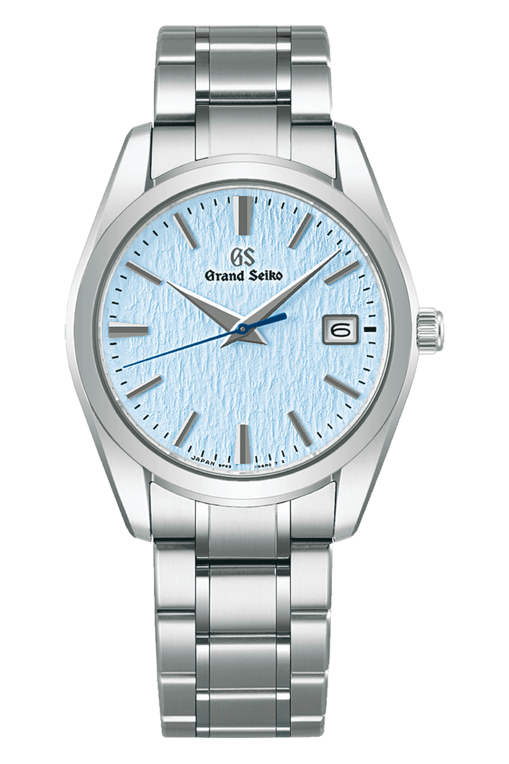 The dial pattern of the SBGX357 conjures images of wind-swept snow reflecting the blue sky on a clear, crisp day. This... unique appearance is achieved when a light blue color is applied to the delicately textured dial. Below the dial is Grand Seiko’s quartz Caliber 9F62, which is renowned for its high accuracy and robust, dust-proof construction, among its many features. The 37mm case and the bracelet are formed from High-Intensity Titanium, a material 30% lighter than stainless steel with superior resistance to corrosion and wear.