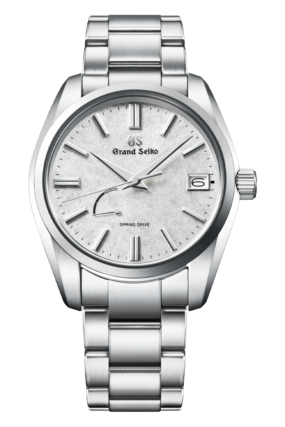 Winter arrives suddenly in Shinshu, the region that is home to the facility where all Grand Seiko Spring Drive watches... are created. Frost forms at night on the trees and, for a brief but beautiful moment, glistens in the still powerful morning sun before melting away. The fleeting beauty of this phenomenon is captured in this dial. Thanks to Grand Seiko’s unique Spring Drive movement, the seconds hand glides silently and smoothly, with no “tick”, across the dial, perfectly reflecting the natural and continuous flow of time. The power reserve is 72 hours when fully wound and is shown on the discreet indicator next to the eight o’clock index.