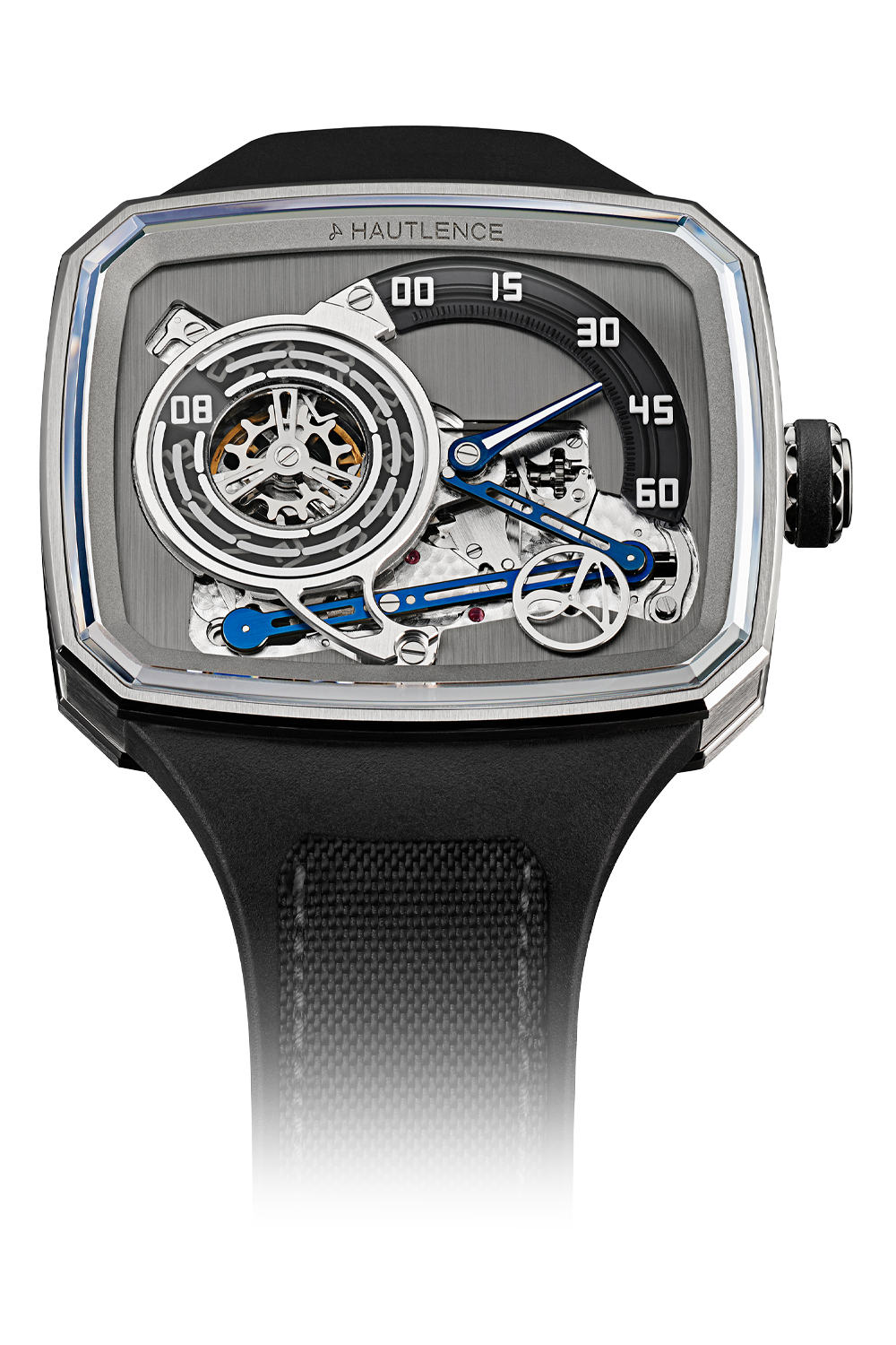 Tracing Hautlence’s origins back to 2004, the HL01 was conceived with a bold vision to challenge traditional... watchmaking conventions. By rejecting the use of conventional hands and circular movements, it introduced a pioneering design centered around a rectangular horizontal case and the innovative Lokomotive arm. This mechanism facilitates the signature jumping minutes and flicking hours, creating a dynamic and captivating way to display time. Celebrating 20 years of relentless dedication to reinterpreting horology, this mechanical marvel stands as a testament to the brand’s commitment to innovation and precision. The HLXX marks its return in a refined, more compact titanium case, paired with an integrated, interchangeable bracelet that enhances both comfort and aesthetic versatility. Together, these elements showcase a perfect harmony between expert craftsmanship and contemporary sophistication, appealing to connoisseurs who appreciate both technical mastery and distinctive design.