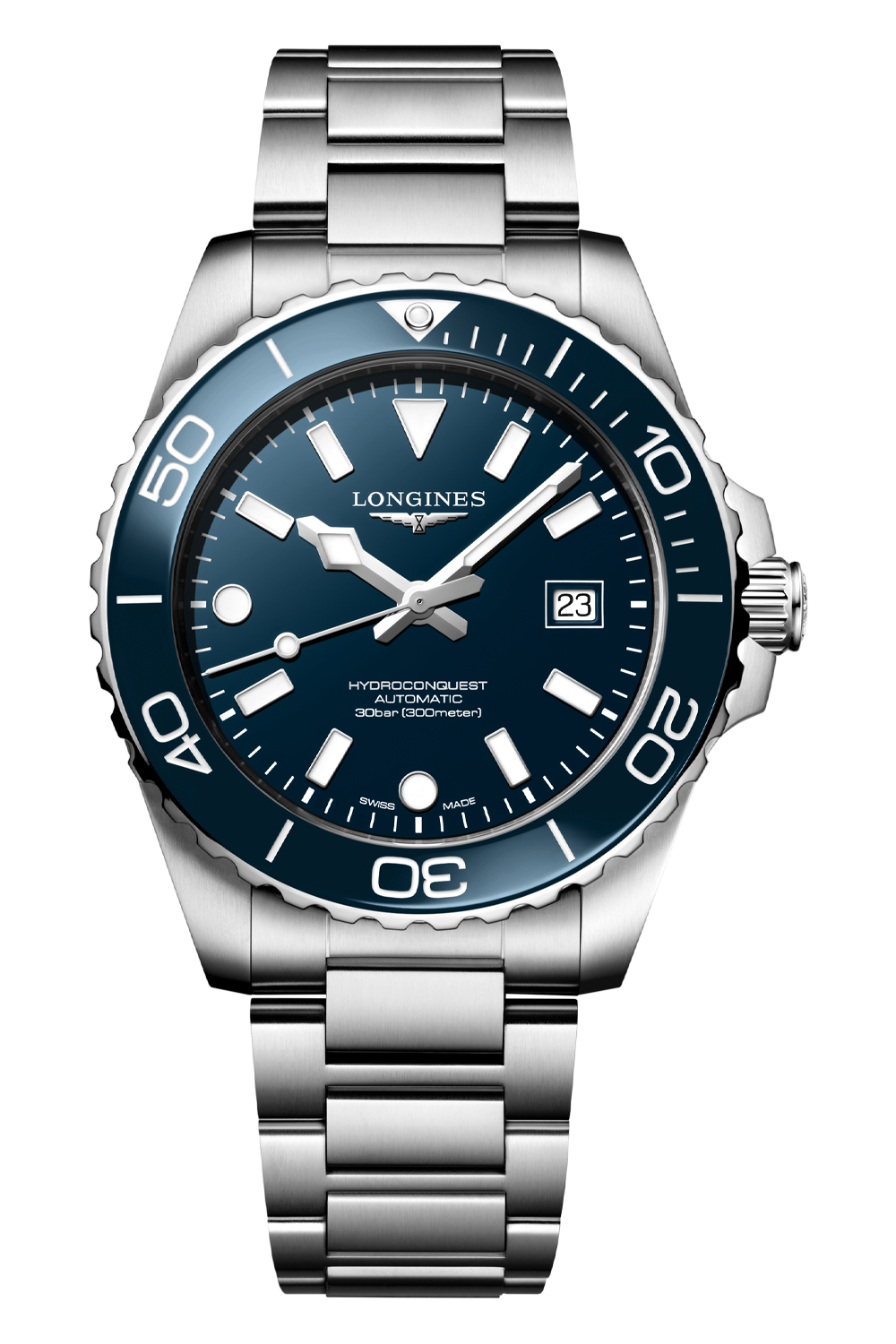 The HydroConquest brings the signature Longines elegance to the diving community. Made with impeccable precision and high levels of technical performance, this diver’s watch integrates functionality with graceful design. This watch is water resistant to 300 meters.