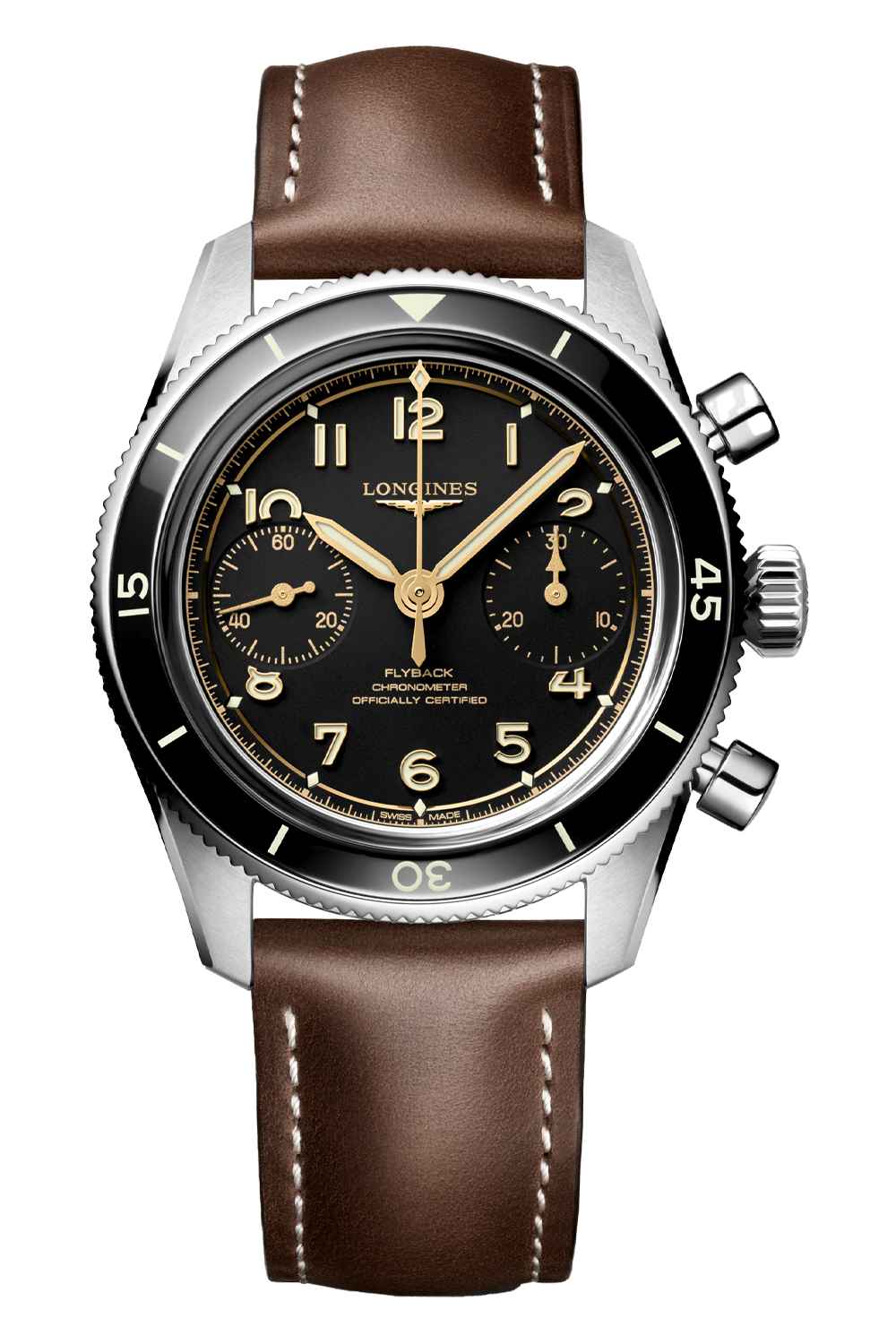 The LONGINES Spirit Pilot Flyback collection captures the brand’s persistent drive for innovation. This... chronograph, with its flyback function, highlights LONGINES’ pioneering expertise in this field. The winged hourglass brand introduced its first flyback-equipped model in the early 1930s and secured a patent for the technology on June 16, 1936, marking a world-first achievement. Designed as a groundbreaking tool for pilots, the flyback complication makes it possible to time successive flight stages, greatly enhancing navigational efficiency. The precision of the LONGINES Spirit Pilot Flyback is powered by an exclusive LONGINES calibre, fitted with a silicon balance spring and resistant to magnetic fields. This hand-wound mechanical movement is officially certified as a chronometer by the COSC.