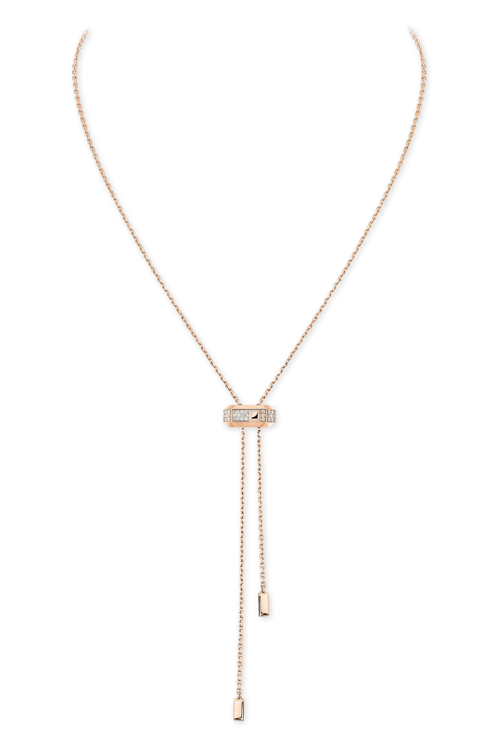 Moderniste Pave Tie Necklace in 18K Pink Gold, 31 diamonds with round brilliant cut G - VS...