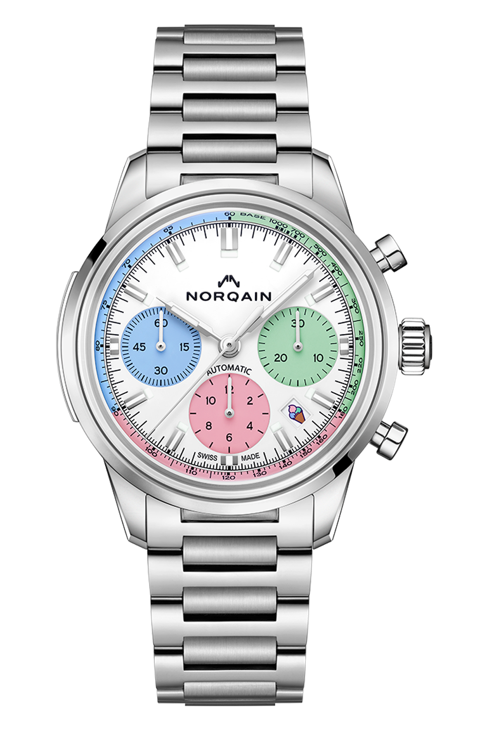 The Freedom 60 Chrono 40mm Enjoy Life Special Edition – a scoop of summer on your wrist. Bursting with vibrant colours,... this timepiece channels the carefree spirit of the season. Playful ice cream illustration and the uplifting “Enjoy Life” motto make it the perfect companion for sunny days. A joyful tribute to colour, fun, and freedom