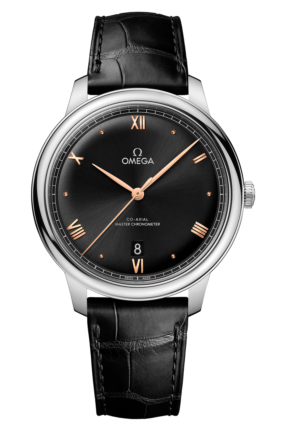 This Master Chronometer certified watch is presented on a black leather strap and is driven by the OMEGA Master Co-Axial Calibre 8800, which can be admired through the scratch-resistant sapphire crystal caseback.