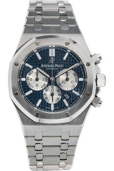 This pre-owned Royal Oak Chronograph is crafted from stainless steel with a blue dial featuring stick markers.... Replete with a stainless steel bracelet, it is an exceptional choice for any collection.