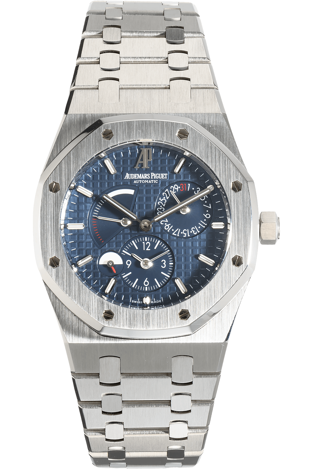 This pre-owned Royal Oak Dual Time is crafted from stainless steel with a blue dial featuring stick markers. Replete... with a stainless steel bracelet, it is an exceptional choice for any collection.