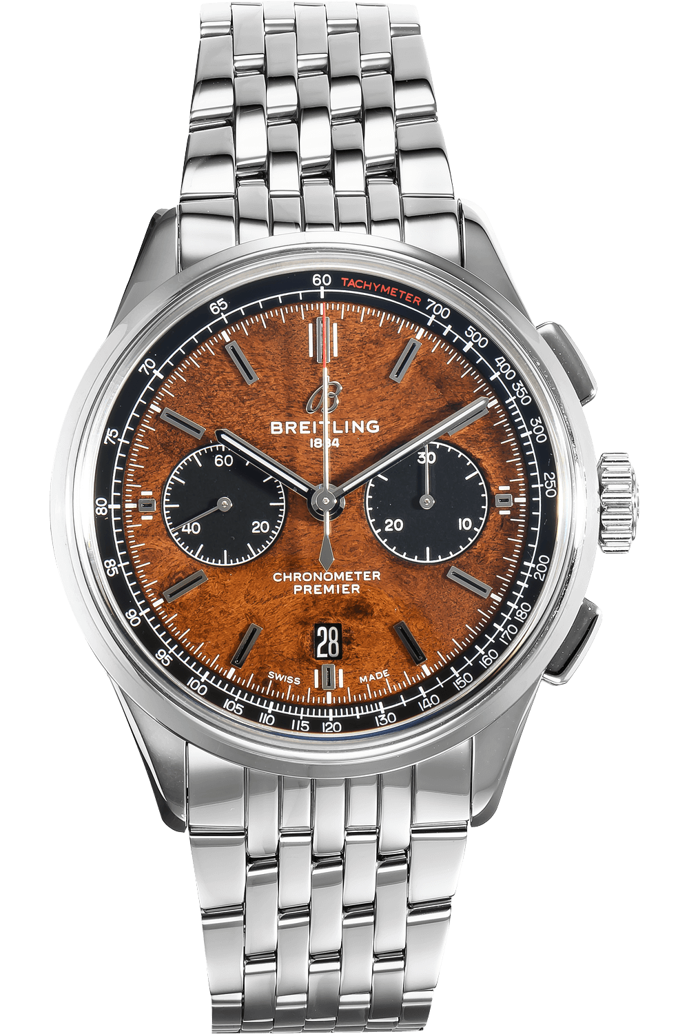 This pre-owned Premier B01 Chronograph "Bentley Centenary" Limited Edition is crafted from stainless steel with a... brown dial featuring stick markers. Replete with a stainless steel bracelet, it is an exceptional choice for any collection.