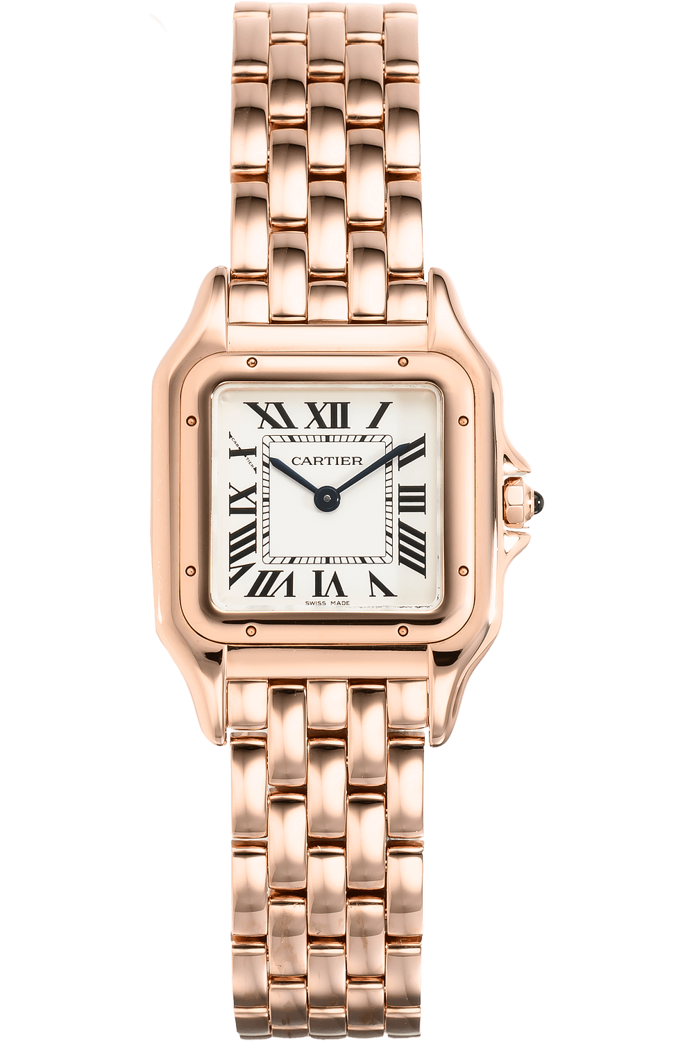 This pre-owned Panthere is crafted from rose gold with a silver dial featuring roman markers. Replete with a rose gold... bracelet, it is an exceptional choice for any collection.