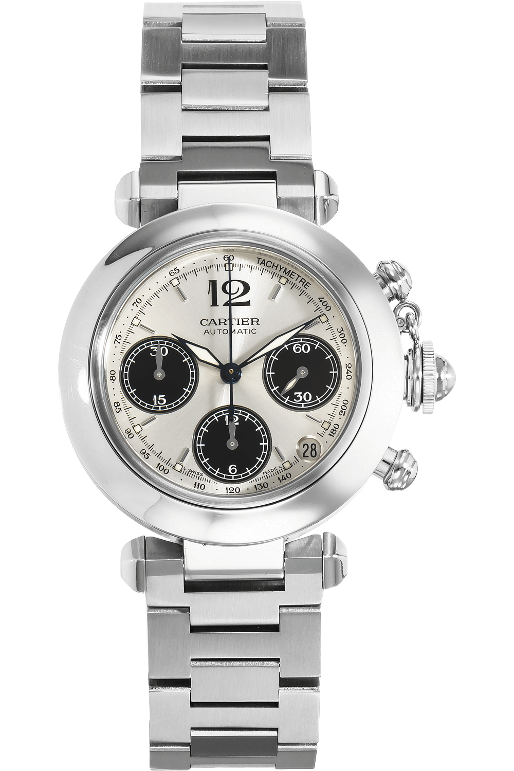 This pre-owned Pasha C Chronograph is crafted from stainless steel with a silver dial featuring stick markers.... Replete with a stainless steel bracelet, it is an exceptional choice for any collection.