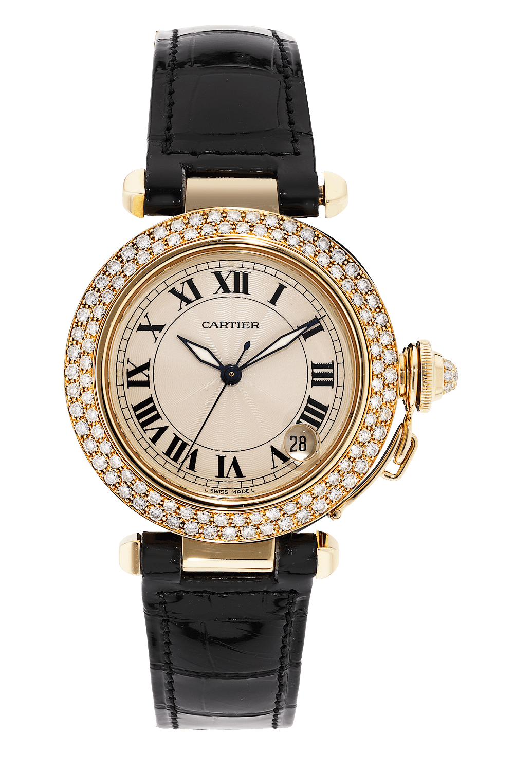 The Pasha is a highly sought-after classic. It was created by Louis Cartier in the 1930's for the Pasha of Marrakech, who wished for a watch that was both water resistant for his daily swims as well as elegant enough for royal duties. The Pasha has since seen countless reinterpretations, each characterized by a sense of simple elegance.
