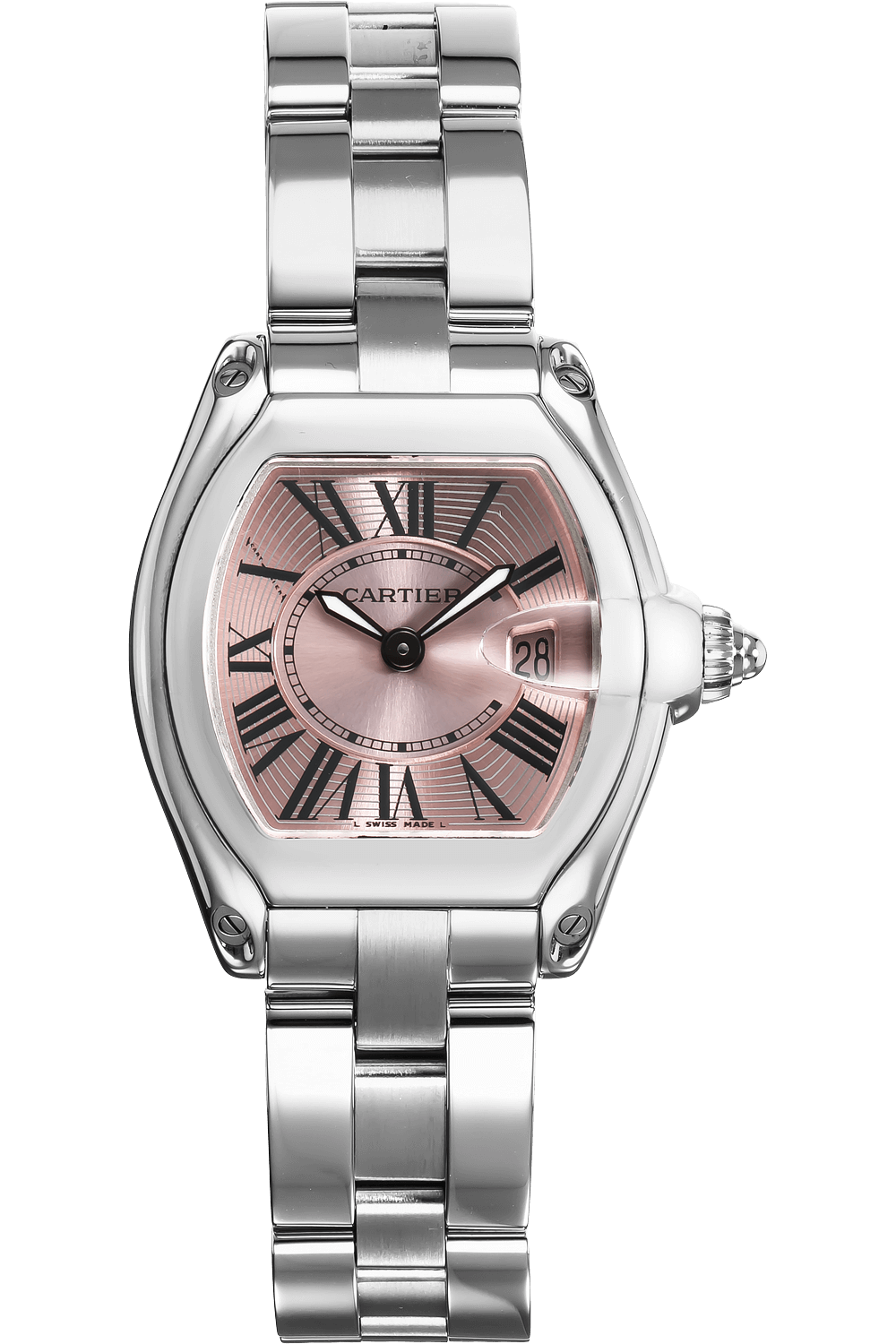This pre-owned Roadster is crafted from stainless steel with a pink dial featuring roman markers. Replete with a... stainless steel bracelet, it is an exceptional choice for any collection.