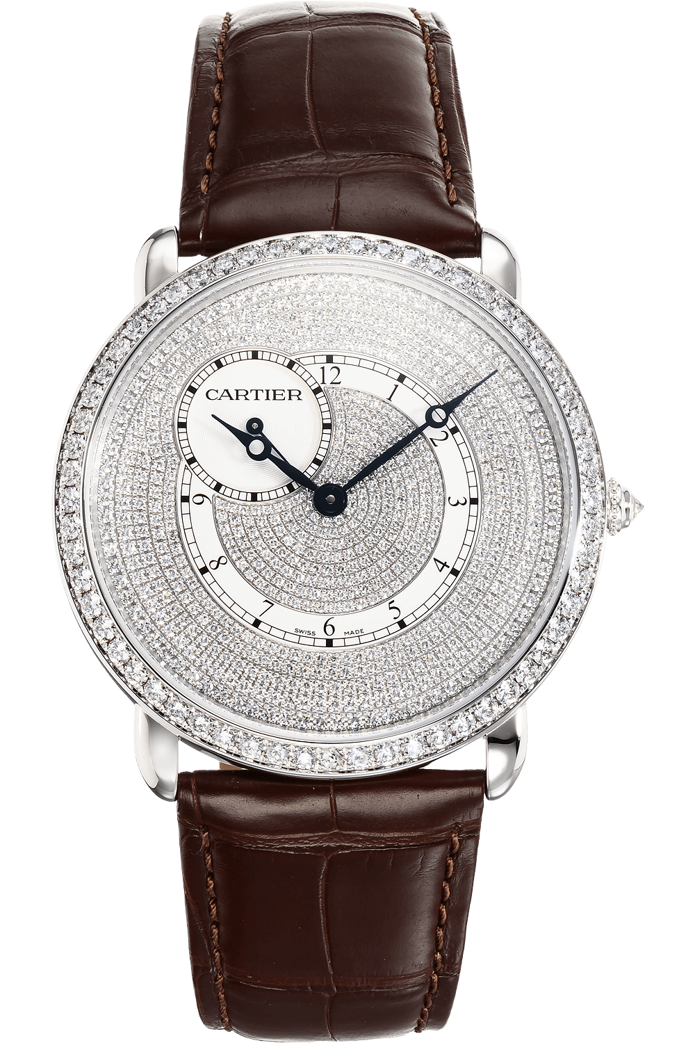 The Ronde de Cartier is a classic timepiece with by a versatile design defined by Roman numerals and blue steel hands....