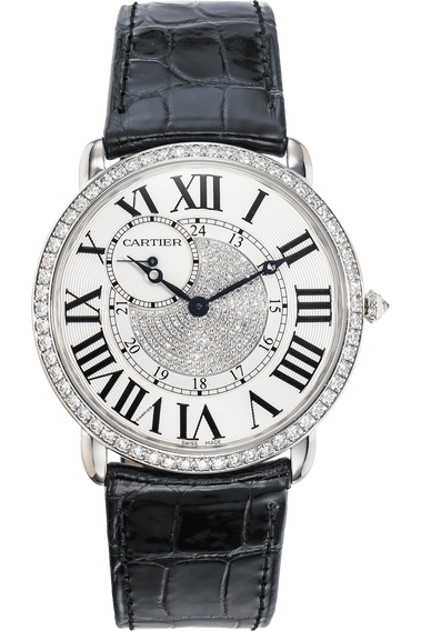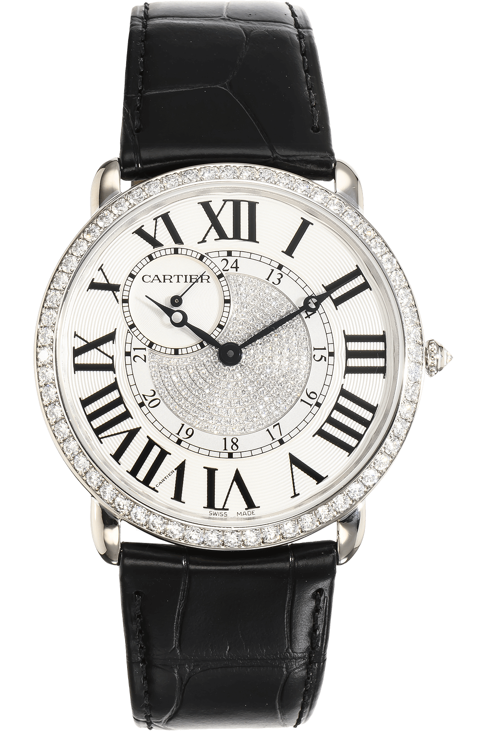 This pre-owned Ronde Louis is crafted from white gold with a silver dial featuring roman markers. Replete with a black alligator strap with deployant clasp, it is an exceptional choice for any collection.