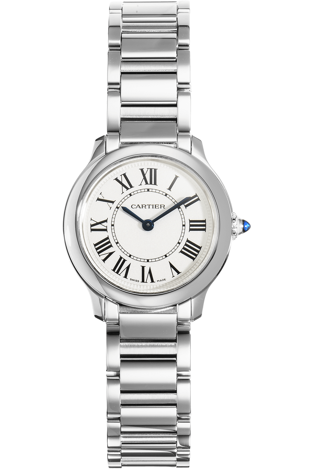 The Ronde de Cartier is a classic timepiece with by a versatile design defined by Roman numerals and blue steel hands.