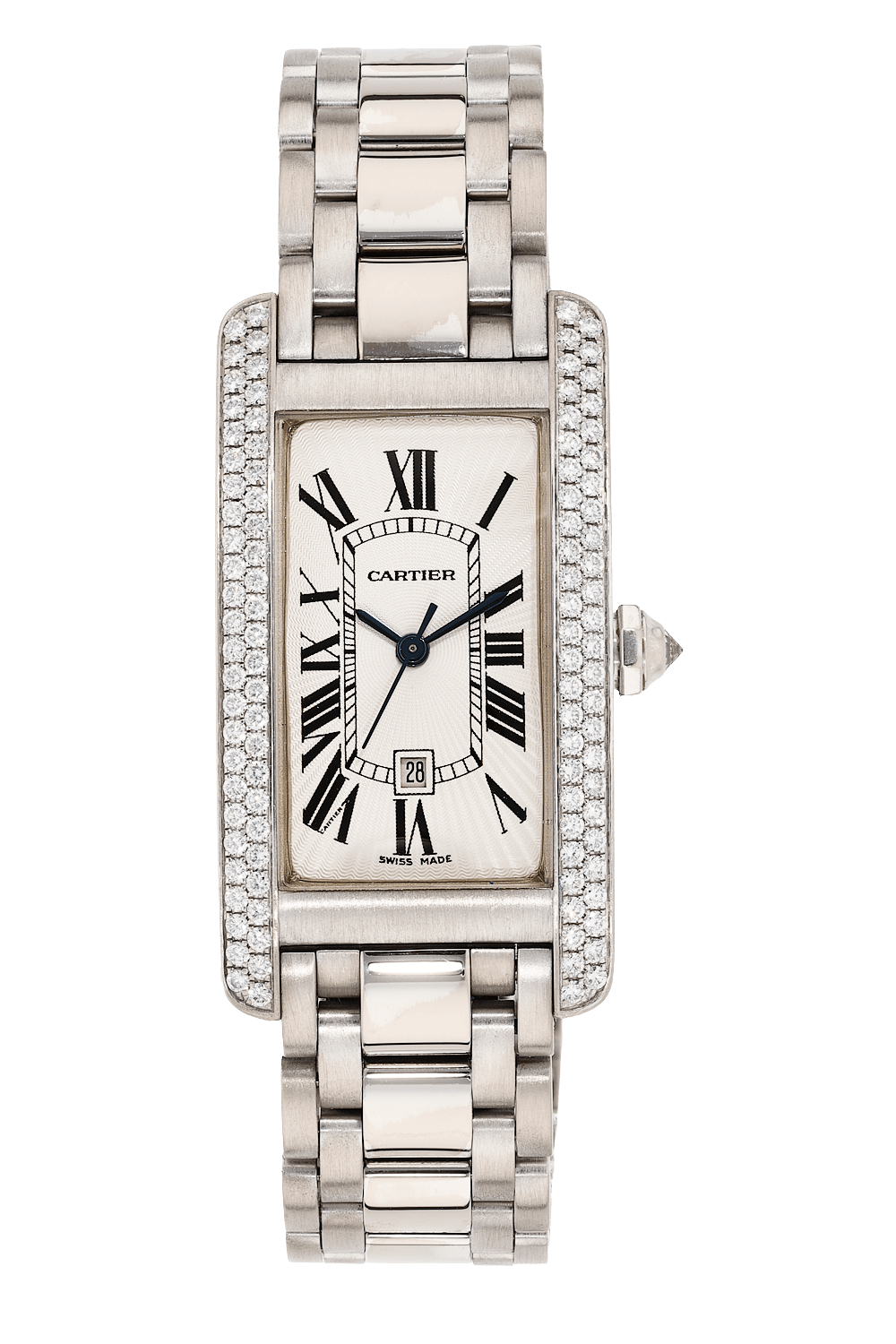 This pre-owned Tank Americaine is crafted from white gold with a silver dial featuring roman markers. Replete with a... white gold bracelet, it is an exceptional choice for any collection.