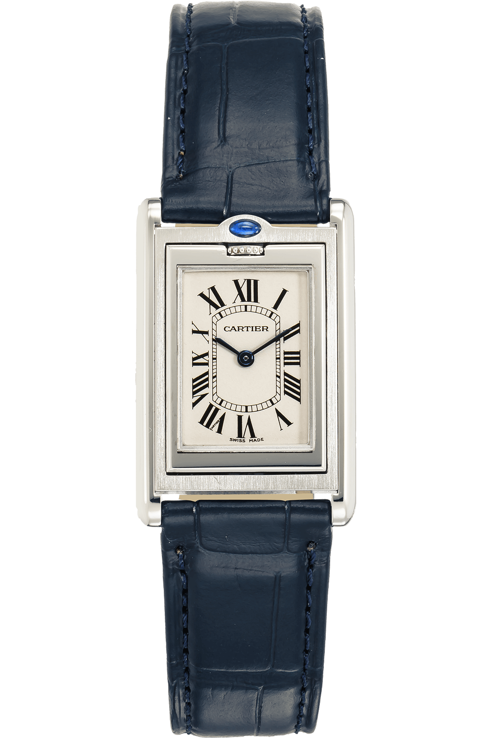 This pre-owned Tank Basculante is crafted from stainless steel with a silver dial featuring roman markers. Replete... with a blue alligator strap with tang buckle, it is an exceptional choice for any collection.
