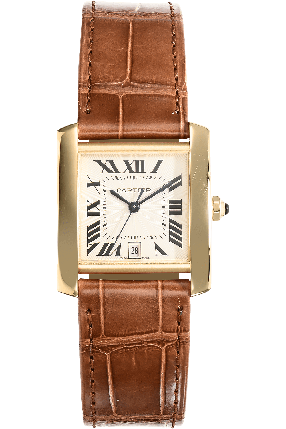 This pre-owned Tank Francaise is crafted from yellow gold with a silver dial featuring roman markers. Replete with a... brown alligator strap with tang buckle, it is an exceptional choice for any collection.