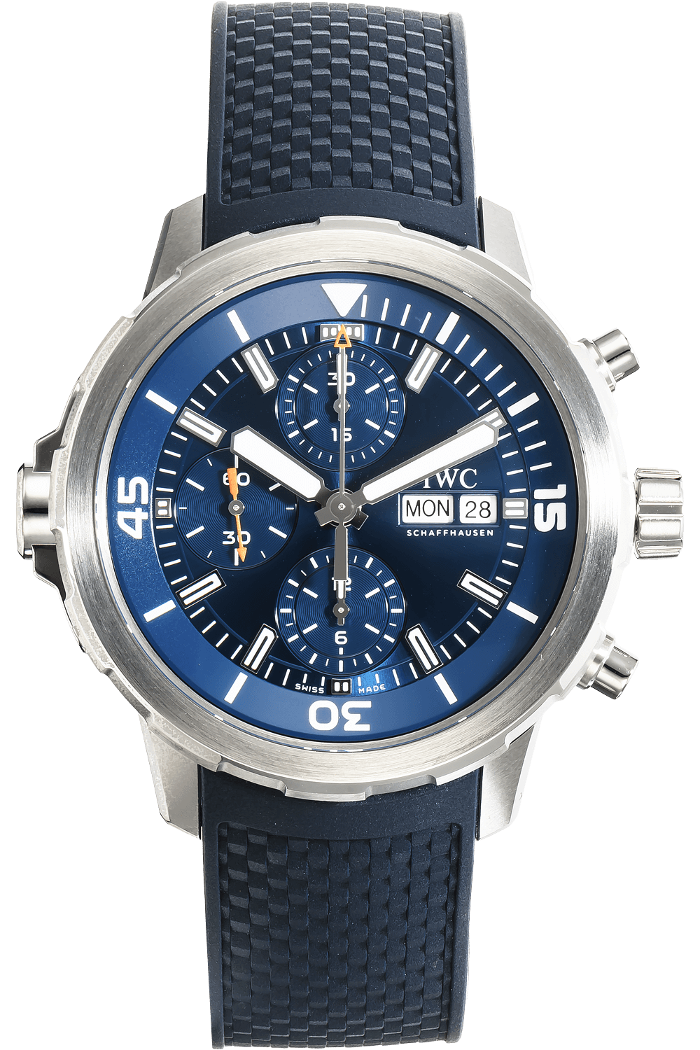 A diver's watch first introduced in 1967, the Aquatimer is ideal for expeditions both on land and in water. Its distinctive, purist design pays homage to the original in its family.