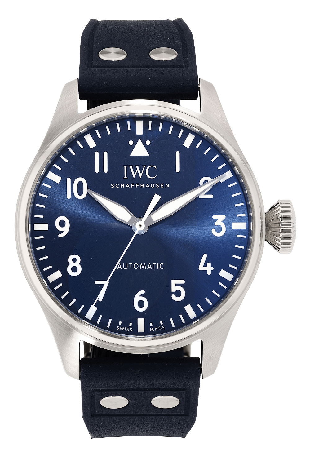 This pre-owned Big Pilot is crafted from stainless steel with a blue dial featuring arabic markers. Replete with a... blue rubber strap with deployant clasp, it is an exceptional choice for any collection.